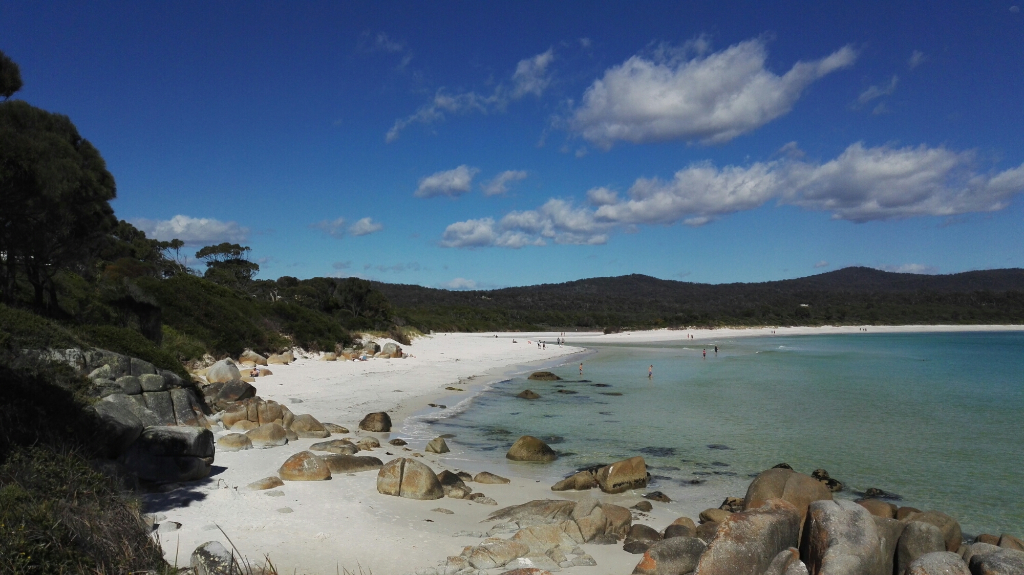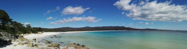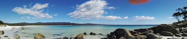 Le nom Bays of fire, baies de feu, vient de la couleur orange du lichen sur les rochers. Binalong Bay est la ville qui marque la limite sud des Bays of fire. L’eau n’est pas très chaude mais suffisamment pour se baigner.