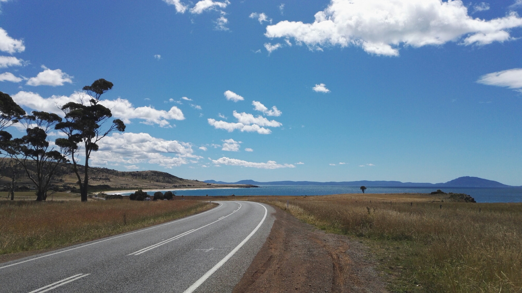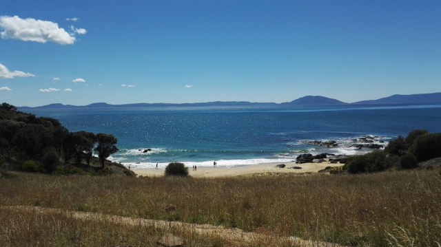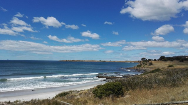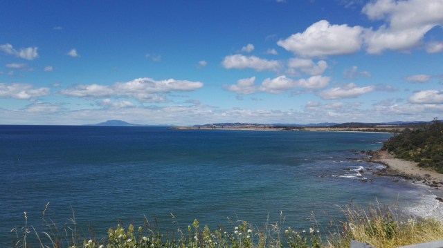 Très belle journée le long de la côte, route sympa, pas trop de grimpettes ni de vent. La première partie est la plus intéressante en termes de paysage grâce la péninsule de Freycinet et l’île de Schouten.