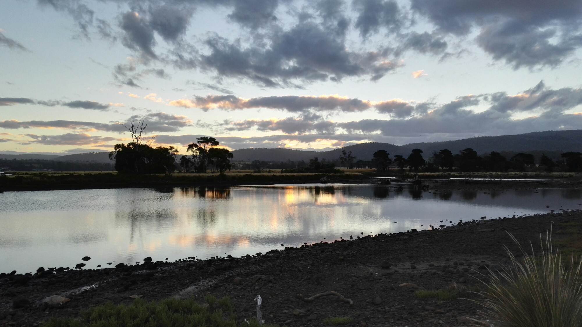 La nuit tombe sur Triabunna, près du port :