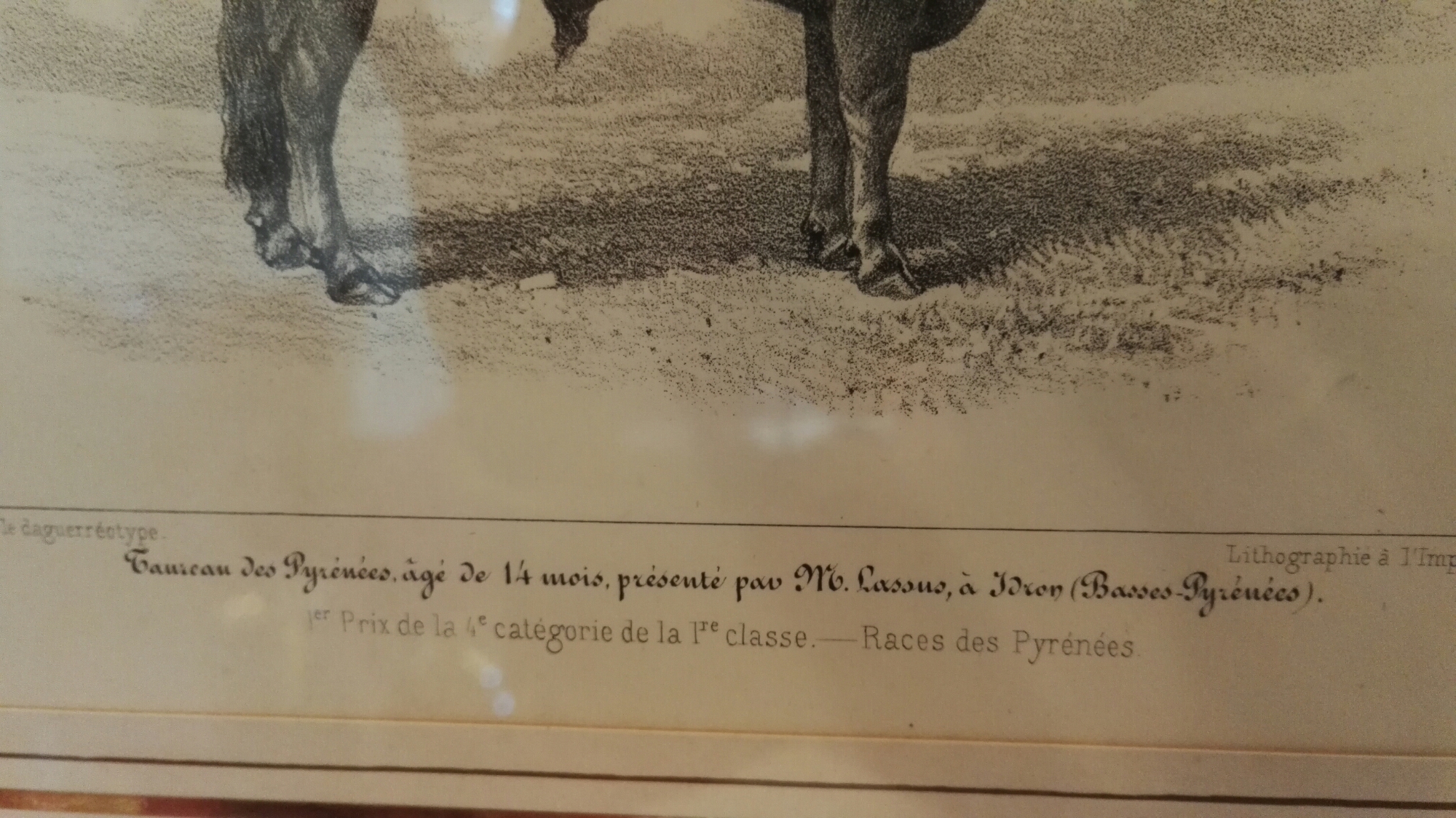 Surprise au petit déjeuner dans le Bed & Breakfast, sur le mur à côté de moi des gravures de 1856 et 1857 représentant des bovins vainqueurs de concours de beauté. Le plus proche de moi montre un taureau présenté au concours d’Auch par un certain M. Lassus d’Idron !